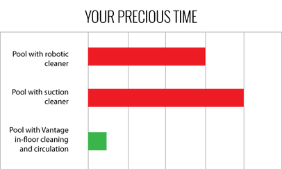 Suction cleaners and robotic cleaners are best described as semi-automatic cleaning systems. Once YOU have unpacked them from their hiding place, they need to be positioned in the pool and either connected to a suction point (suction cleaners) or connected to a power point (robotic cleaners). To unpack, install, and then remove your semi-automatic cleaning system will take at least 20 minutes of your precious TIME on each occasion. During summer, when you’re using your pool the most, this can be a daily task.